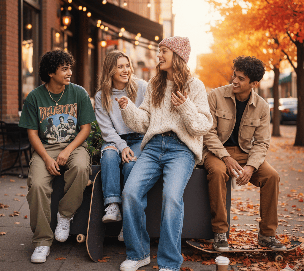 From wide-leg pants to the perfect casual sweater, get inspired by these effortlessly stylish looks for your next adventure with friends.