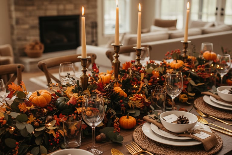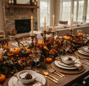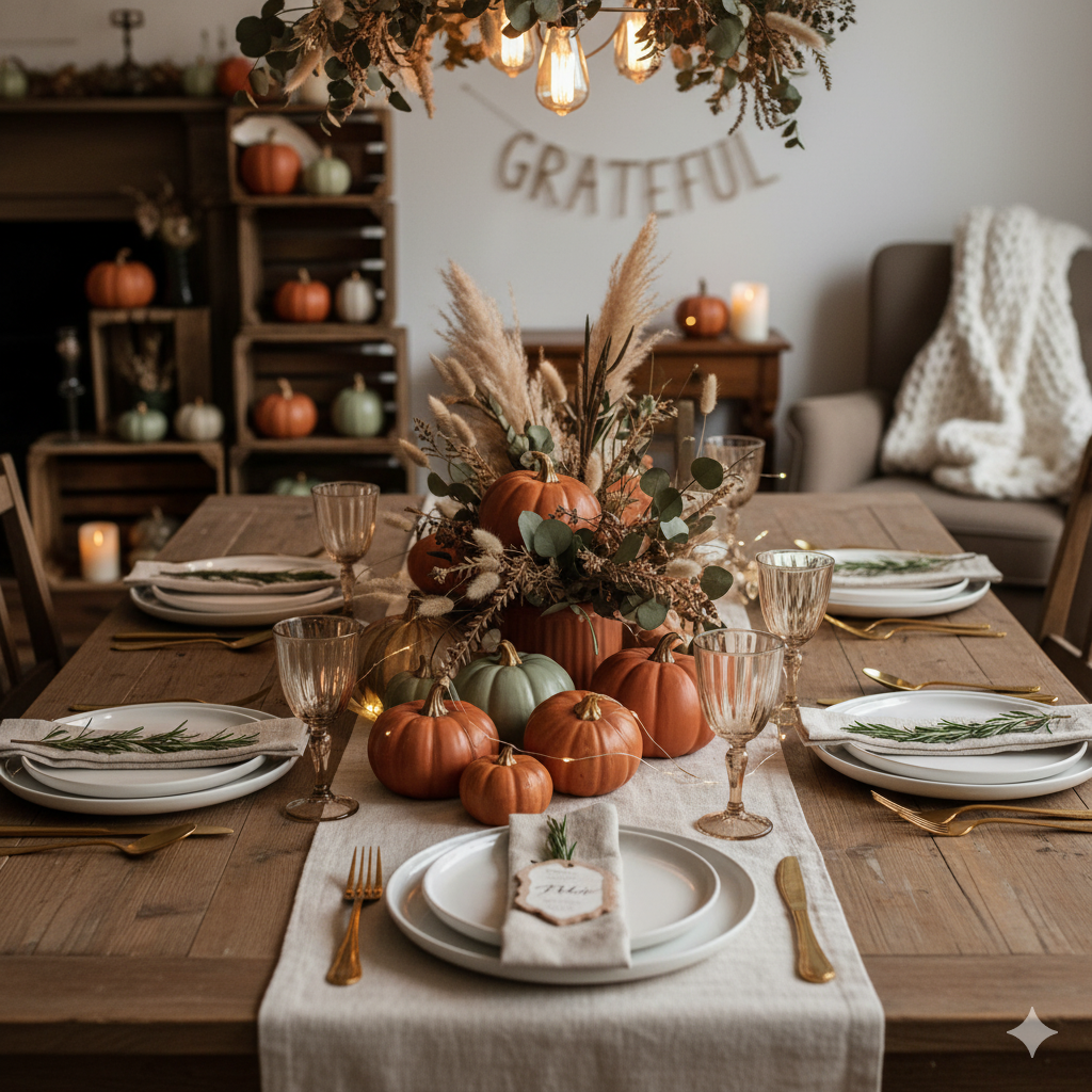 I love this cozy, rustic, and elegant tablescape for Thanksgiving or Friendsgiving.