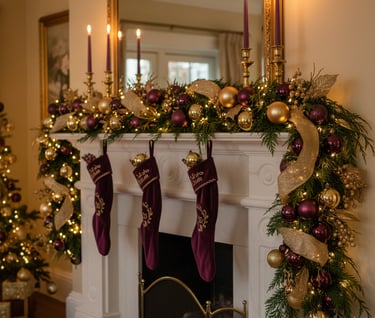 Layer and Refine: Step back and assess your garland. Adjust the placement of ornaments and lights to ensure an even spread of color and sparkle. You're aiming for a lush, opulent look where the plum and gold elements complement, rather than overwhelm, the natural greenery.