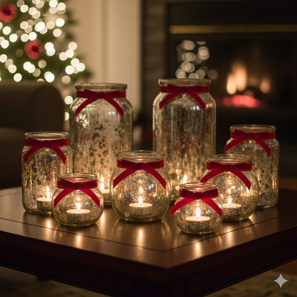 Optional: Red velvet ribbon or twine, and battery-operated tea lights.